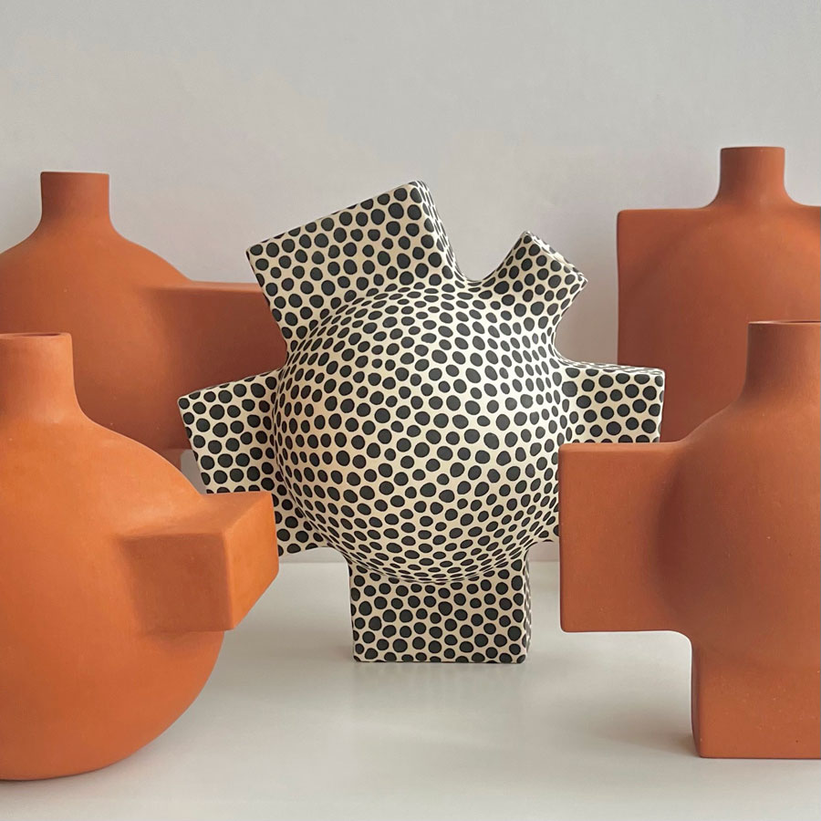 The Cartwheel vase with dots is a collaboration with Johanne Birkeland.