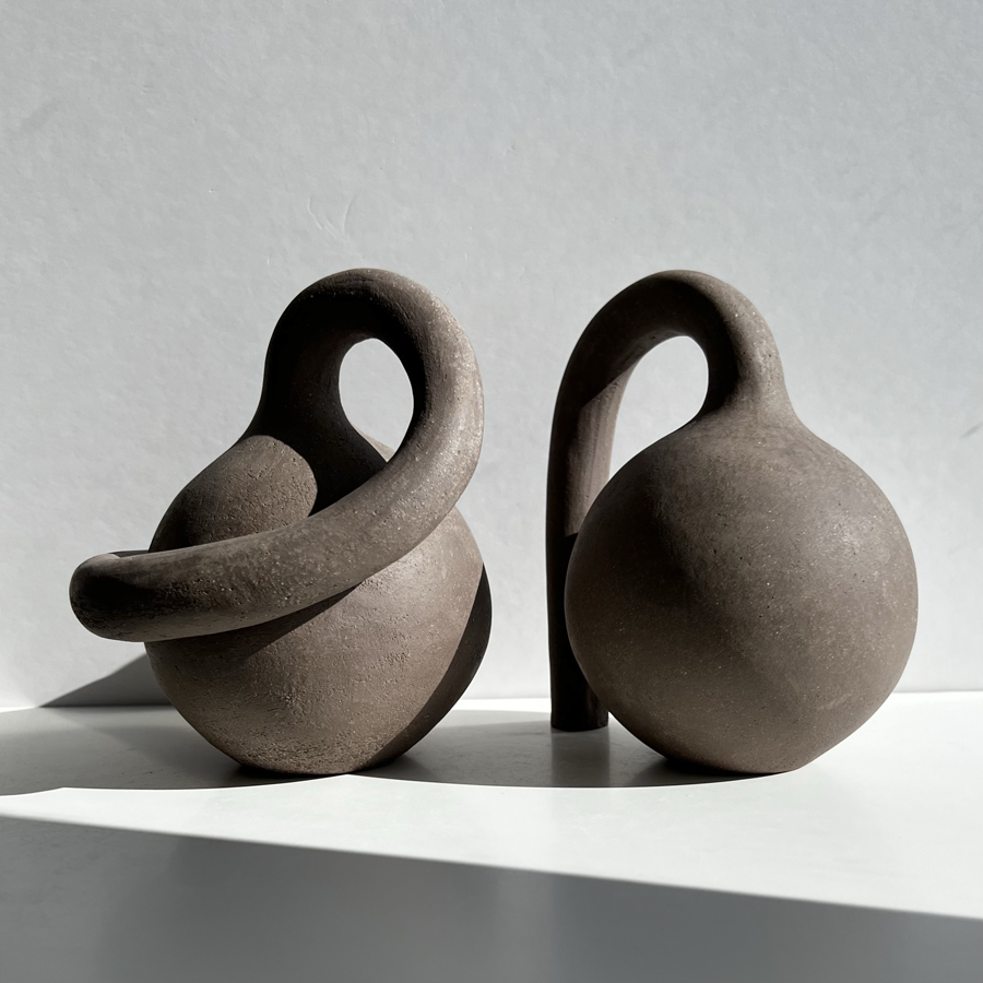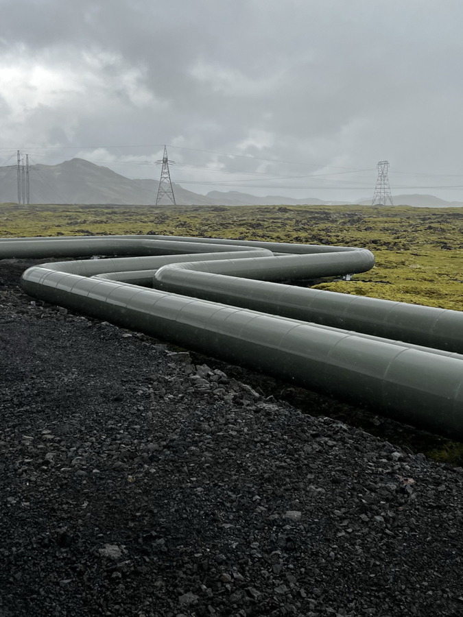 Pipes carrying geothermal water in Iceland and the notion of energy from the ground inspired these works.