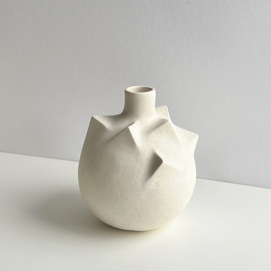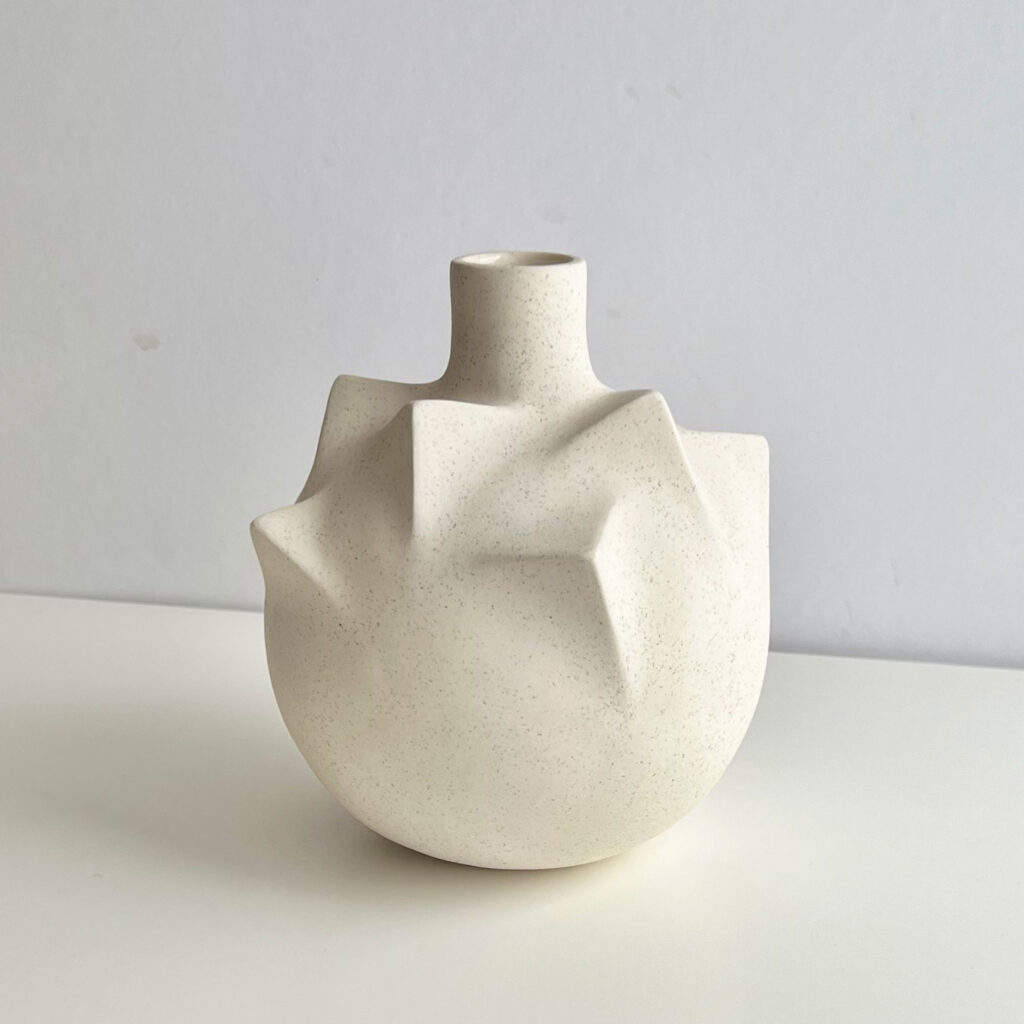 Creative resolution takes time sometimes. In 2022 I visited Svalbard, an archipelago between northern Norway and the North Pole. The view flying in, was spectacular. I wanted to use the experience in a piece of work, but couldn’t figure out how. Later on I made a version of the 2022 work Metamorphosis in white, suddenly I could see the peaks and made the Svalbard vase, in 2024.